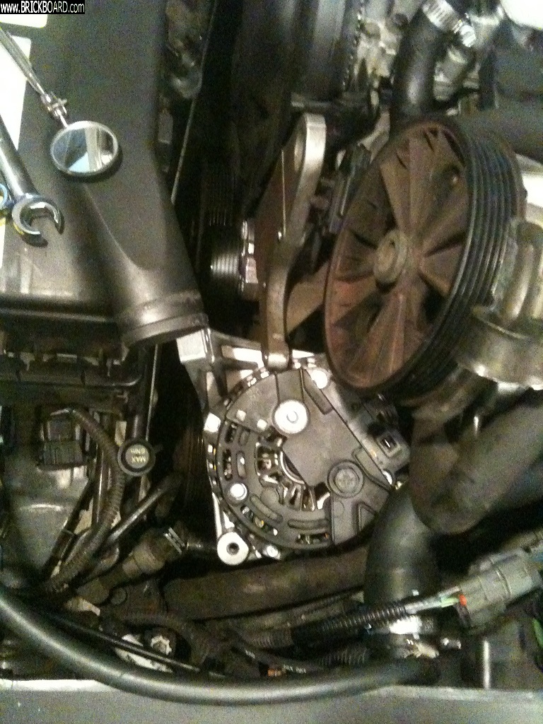 I found the alternator a little tricky to remove/install so I snapped this pic of how I got it in/out of the engine bay. The way it worked for me was to orient the alternator with the backside facing upwards and then rotate it so the alternator mounting flange plane was parallel to the plane of the timing belt. It was still a squeeze but it worked.