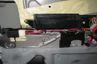 The gray connector goes to the window motor, but the connector won't mate with the 740/940 connector, so you'll have to make a butt splice. The yellow/red wires and the black are spiced into the same color wire at the switch. See left. The picture below on the right shows the butt spices for the motor wiring.