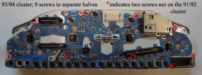 [Randy Starkie] This procedure describes the steps necessary to alter the instrument cluster from a 93/94 Volvo 940 for use in a 91/92 Volvo 7/9 series car. This supersedes the previous instructions I put together that were included in the FAQ's. This "fix" is easier and has far fewer steps involved.