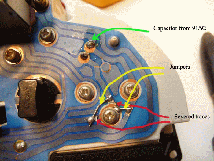 The 91/92 cluster has a capacitor that needs to be removed and then soldered into the 93/94 board. It has been suggested that this capacitor is not necessary but I have never been compelled to test that theory. It is easy enough to remove it from the one board and install it on the later one.