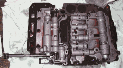 The front of the valve body is to the left. The long object poking out at the bottomleft is the gear selector valve.