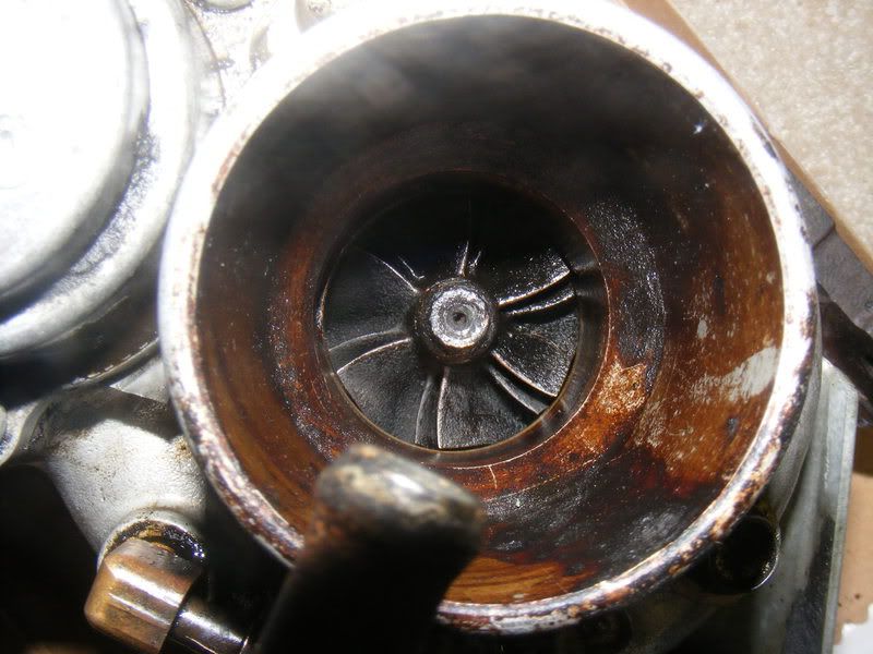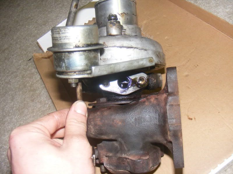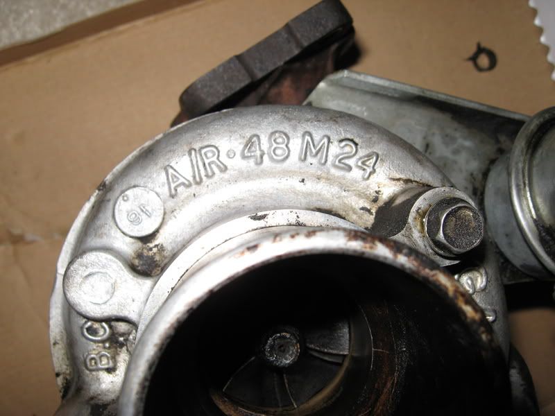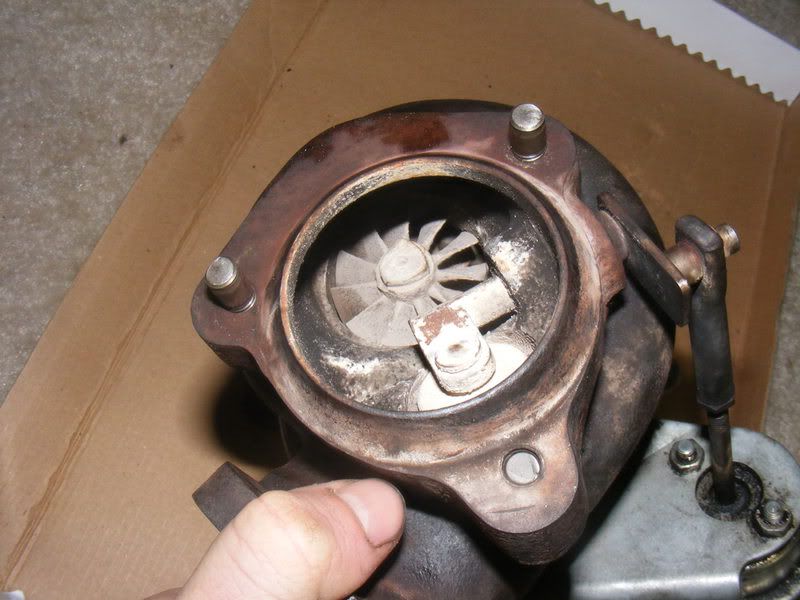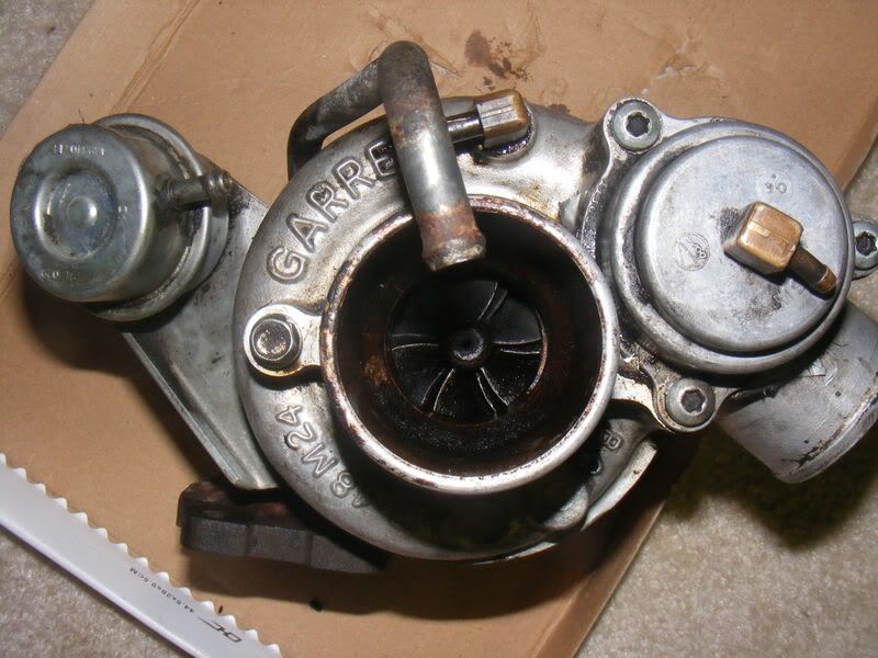 What looks good? bad? Is it usable or should I go with something else from what you can see. There seems to be no side to side or front to back shaft play at all. The manifold is mint...no cracks at all and the intercooler is in wonderful shape...no bent fins, all the piping is there. So I'll probably at least take the intercooler and manifold, the turbo is the only thing I have no idea about. Any help would be GREATLY appreciated.