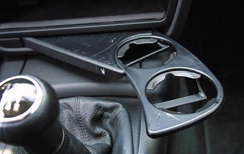 They look a little shoddy, and would require some fabrication for the install, but mounted low like they are in the picture, heavier beverages might be supported by the transmission tunnel, and they would clear the shifter as well. They are little pricey though, and the budget doesn't allow for such research nowadays.