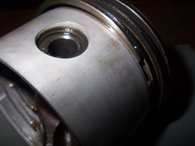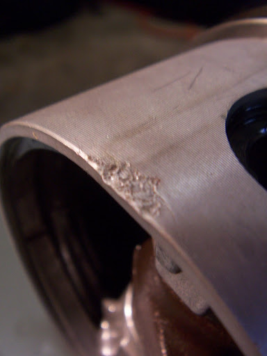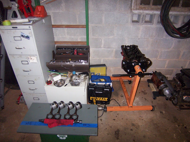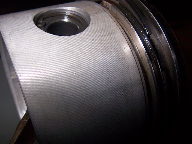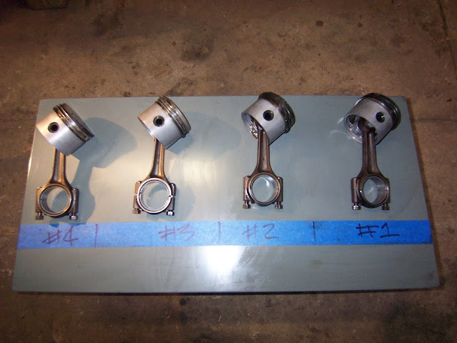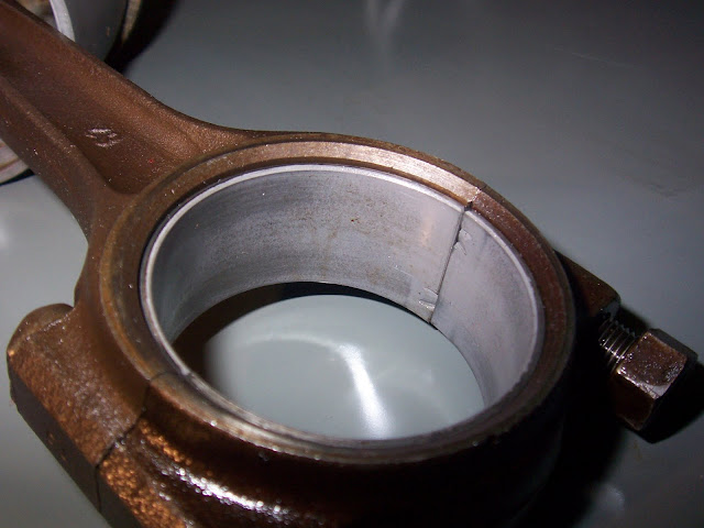 Pistons. Here is the truly embarrassing rookie moment. While removing the #3 piston rod assembly, I managed to fumble it to the floor. They all looked pretty dang good before that. Looking at prices for .040" pistons through IPD, that one little mistake very likely cost me more than I have into the engine at this point. Pretty disheartening, particularly because (to my untrained eye) everything was looking to be in decent shape up until that point. I'm just going to assume until told otherwise that it's scrap, and re-visit the budget to see what can be squeezed to fund new pistons.