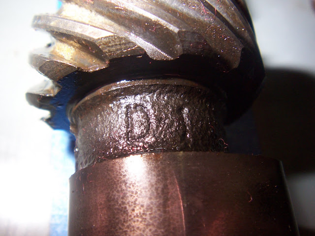 "D1" near distributor drive gear. Says "C1" on the opposite side