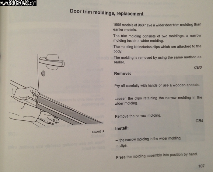 I've never done this, and my 945 came to me with two of those trim pieces held on with little screws, so i suspect it is not easy to do without damaging plastic clips. Here's the one relevant section in the greenbook. Written for the late 960 trim, but notice the text says the process is the same as for the earlier style.