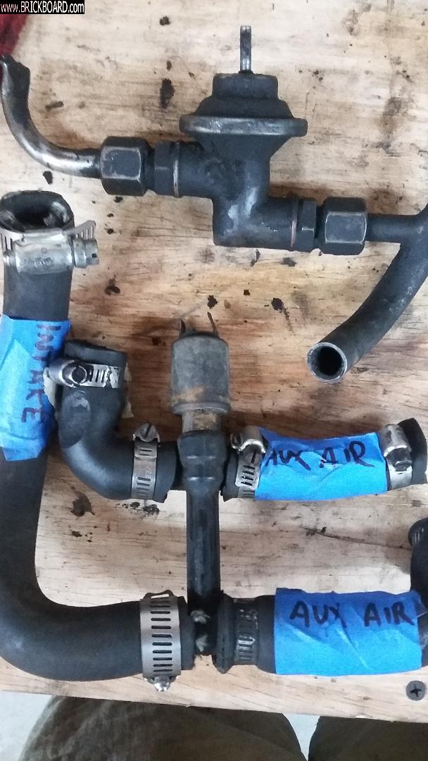 I'm working on my 1973 145. Here's a pic of a sensor I found piped in next to the alternator. I labeled the hoses so you can see that two went to the aux air valve, one went up to the intake and the unlabeled one went into that metal valve. It was spliced into my A/C lead and grounded on the intake at the cold start injector. Temp sensor #1 is in tact and wired at the air inlet. Temp sensor #2 next to thermostat in tact and factory wired. The thermo sensor is in tact and wired. Any ideas what this is and why it's spliced into the A/C?