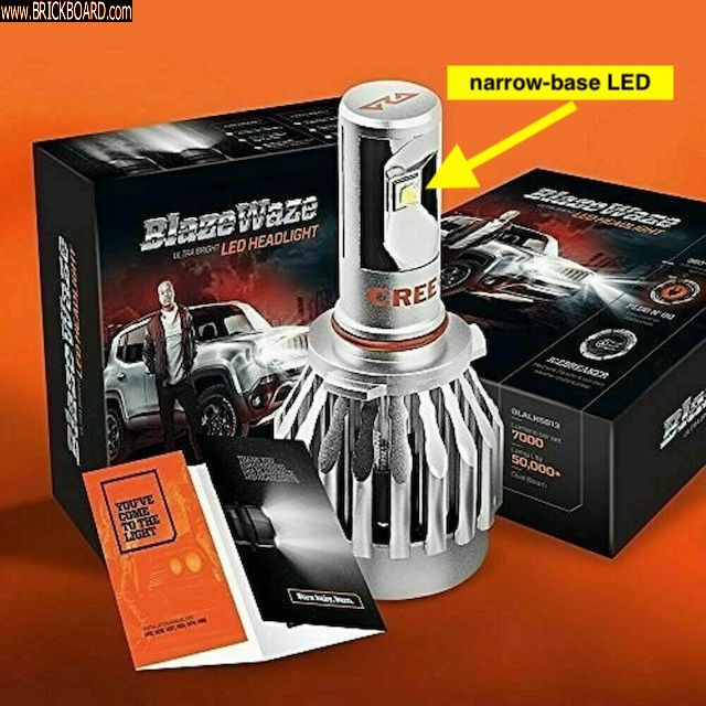Choose these 4th-5th generation LEDs instead. The narrow-base LEDs usually uses Philips Lumileds type bulb with longer lasting lifetime. They mimic the halogen setup more closely: