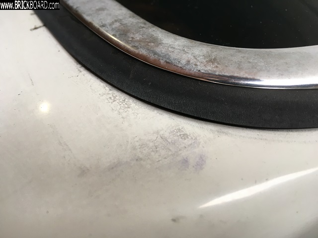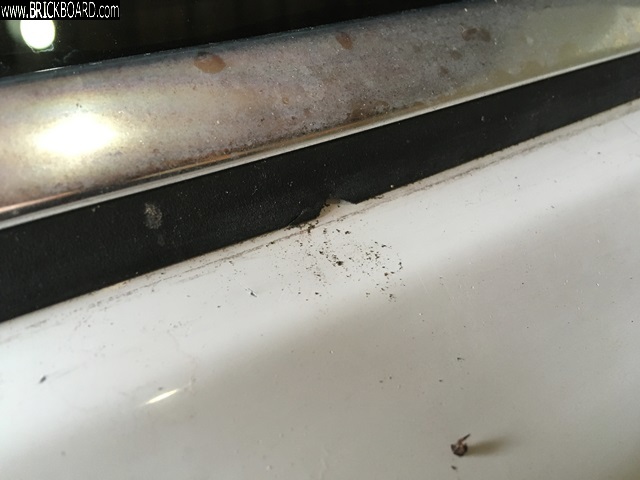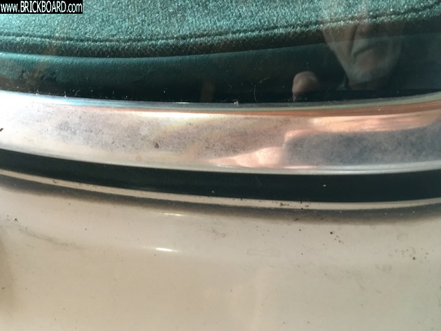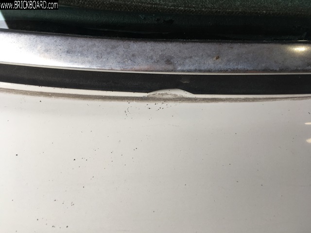 What I received this time was a FW404 windshield with retention of the original chrome trim and “seal”. Now I know that “seal” really doesn’t do much other than keep larger amounts of water and debris out of the window channel. What I am concerned about is the now 36 year-old “seal” has a couple of small pieces taken out of it indicative both its deterioration and lack of care in handling. On one top corner it is about 1/ 32” proud of the body. Along the bottom edge the “seal” sits back about 3/16” from its original position. A nice, black line now shows at the position originally occupied by the “seal”. Makes me wonder how well the glass was positioned to allow this condition.
