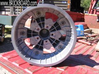 I have these great looking wheels that I've had on a 444 for a long time. They're mags from the '60s and 2 pieces that are bolted together, so easy to repair a flat. I've always run them with tubes 15 x 5.5. The car is gone and I would like to put them on the 122. Problem is the caliper projects beyond the outer face of the rotor on which the wheel sits, by about 1/4".