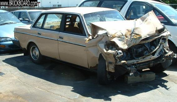 This is a 1984 244DL that was wrecked this weekend. The car is now sitting at a towing company 2 blocks from my house. The pictures dramatically show how good the design of the car was- the "crush zone" did exactly what it was intended to do.