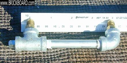 Here is a bypass that I made up to use when I was working on my servo projects. the scale is hard to see in the photo but indicates a length of 3.8" center to center on the fittings. This is all 1/8 NPT stuff except for the brass fittings which should fit your existing female flare fittings, yours may be different. I put the 'T' in to make bleeding easier, but after using it I think two ells would have worked OK. Be sure to secure this to the old booster bracket as it will subject the lines to vibration if you don't.