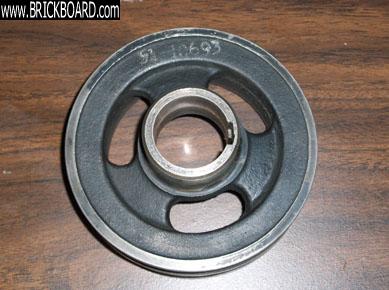 There are two type of these pulleys. There is a heavy duty unit with a built-in spacer that requires a large washer. There's a type that requires a separate spacer and a small washer. I've seen the lighter weight version crack, but lighter weight = less wear better engine performance.
