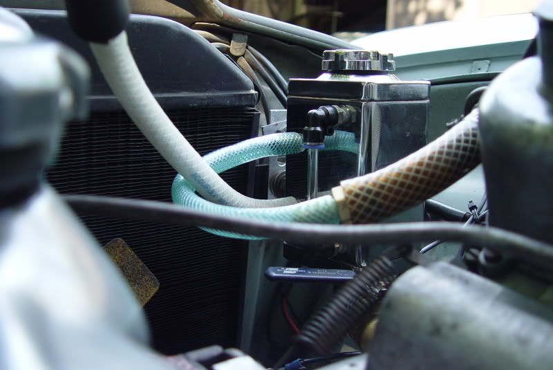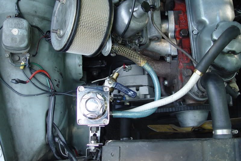 The catch can was purchased on Ebay for about $30. I'll let you know in a week or so what effect, if any, this rats nest of additional hose has on the situation. My hope is that at least the oil will be intercepted before getting to the lead carb.