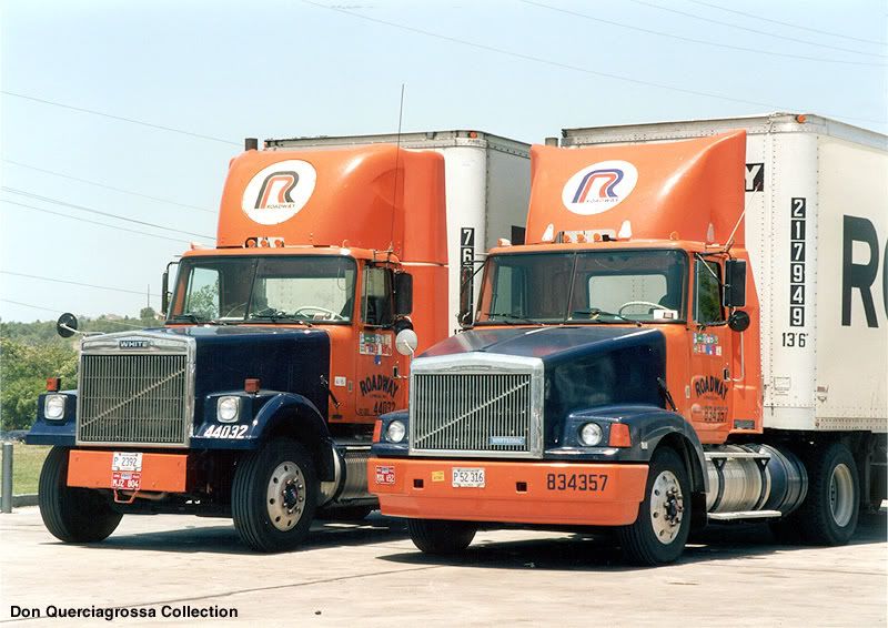 this: wia64tes. They were made by Volvo and White/GMC from 1984 until 1995. The headlamps look very similar, but I have my doubts about the fit. I don't think there would be any stock place to mount the upper trim pieces. And in some pictures the top part of the headlamp seems to slope a little more than ours. Once again, this could be because they don't have the upper trim piece, or it could be due to the angle at which the picture was taken as most are at a front/side view to fit the entire tractor in the frame. Other than that, they look pretty darn close, and there is a single round option I also found (in google image search). If anybody could further verify this, in the near future I may acquire a set through my girlfriend's father who works in the parts department of a truck service/sales yard : )
