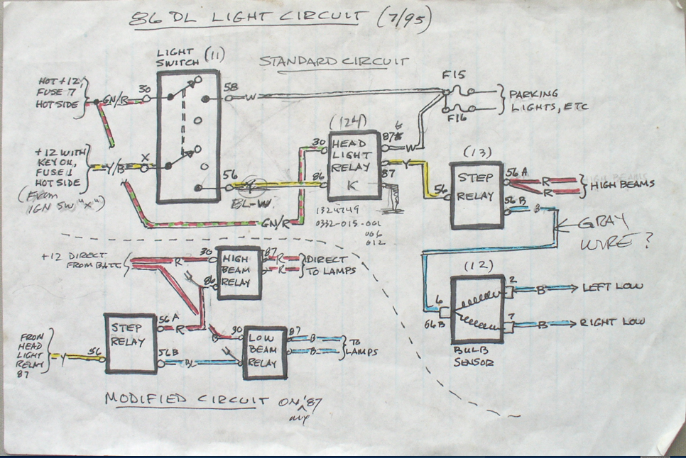 I have to agree with Tony – an "a" terminal is normally closed. So those main HL relay terminals should be labeled 87 and 87b (not 87 a).