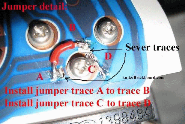 The alteration of the circuit board on the 93/94 cluster is the next step. Sever each of two traces by removing a portions with a razor blade knife. Make four small cuts on each trace and that section of the board will fall away.