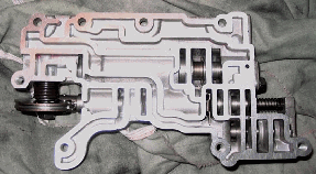 The front of the valve body is to the left. The long object poking out at the bottomleft is the gear selector valve.