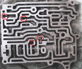 Upper rear valve body. The red circles