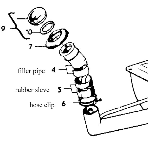 I thought somebody may have given you this possible solution. In the diagram, see if you can loosen the hose clip(s) - my 444 has 2. You should be able to pull the filler neck and gas cap off. I did find a WASO key blank on eBay, but did have a working key. Good luck.