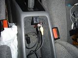 The 3 wires from the volume control were then (with spade connectors) connected to an old cell telephone charger cable I had lying around (shielded) and I also had an old RCA jack that I mounted in the center console box. The cable to the ipod is really a video cable from a camera but it works fine and is black..