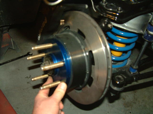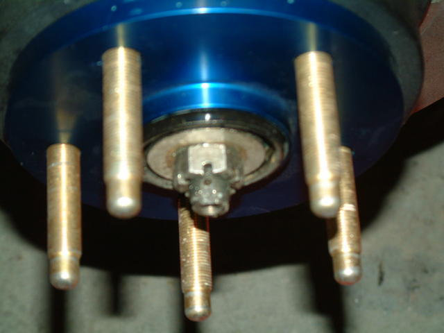 Here's a shot of the hub, rotor and spacer installed. Don't worry, the hub is completely stock - it's just that everything else is not.