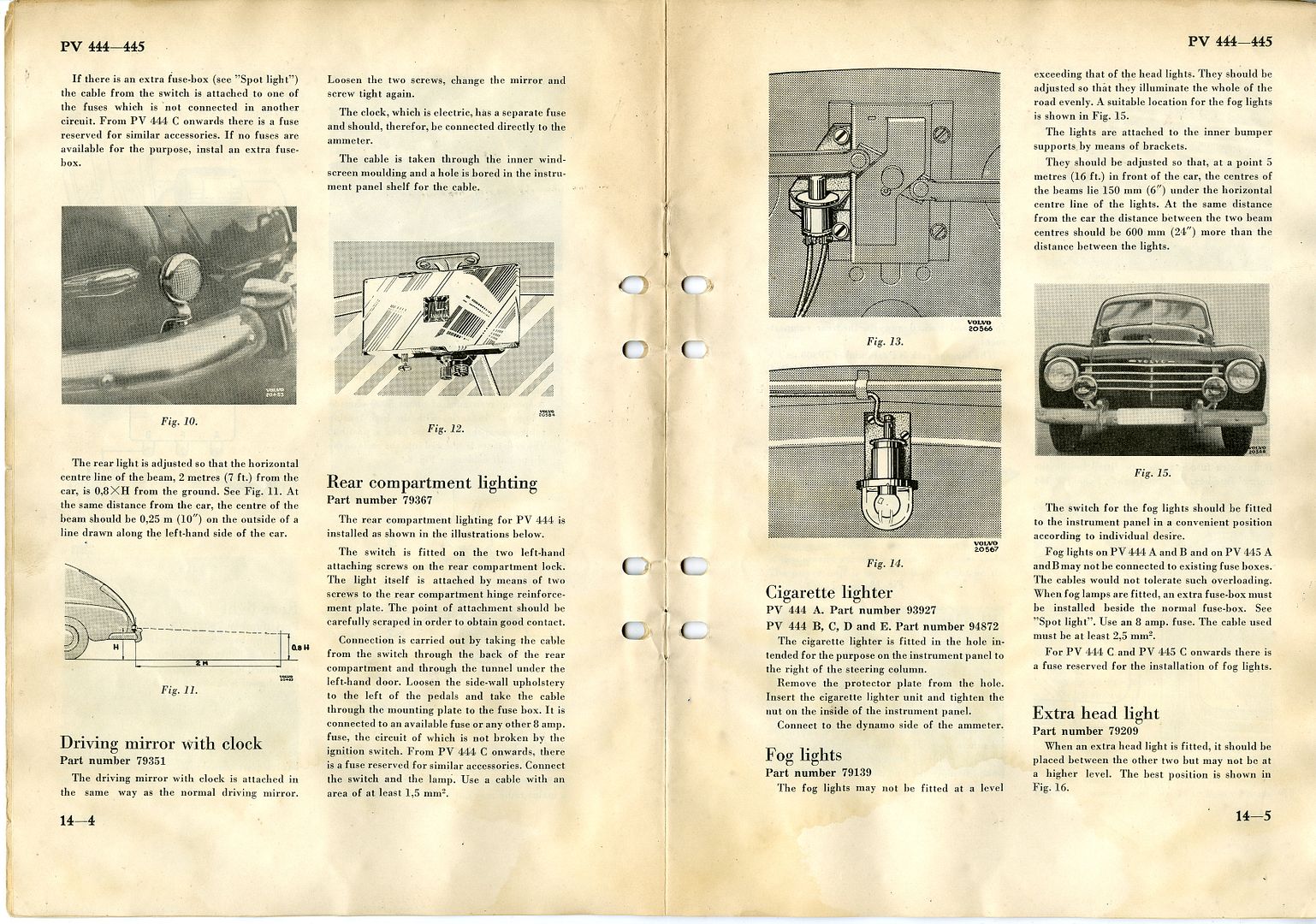 These come up, both the round one and the rectangular one, on Tradera.com in Sweden. I was even able to get an NOS version of each, one for my 1956 and one for my 62. Here is the round one shown in a 1955 accessories catalog, and mine mounted on my 444. The part numbers are #79027 (round) and #79503 (rectangular)