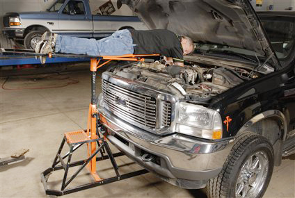 I tried the method using the 4 X 8 and trimmed down plywood boards, but the board bent, and I'm at my knees protrude past the front cross member that has the hood latch, Stuff was moving around so I aborted. The CPS (RPM) sensor cable was showing shiny foil.