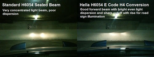 I seem to recall that the DOT's logic behind requiring sealed beams was that they (well, look at the name) would not allow any moisture, dust, etc. into the housing which could reduce the illumination, weak as it already was. Later models of sealed beams could be had with a halogen bulb inside which gave better light output, but they still employed inferior lens and reflector precision compared to the separate bulb-and-housing of E-codes.