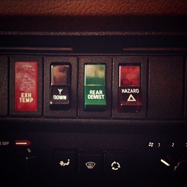 Not my dash. Same 240 power mast aerial switch I use for reverse lights between red EXHAUST TEMP warning light and green REAR DEMIST toggle switch.