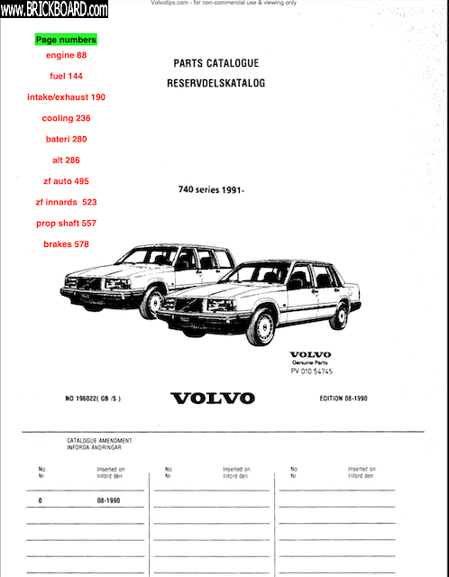 Regarding the woodruff key, I posted that thread because I just replaced my timing belt (940 1994) months ago and didn't experience that difficulty. Just in case the 940 was different, I searched back my softcopy 740 parts catalog just to be sure, and the crank parts diagram was from this catalog (shown below). The red page numbers listing are for my own quick reference for access.