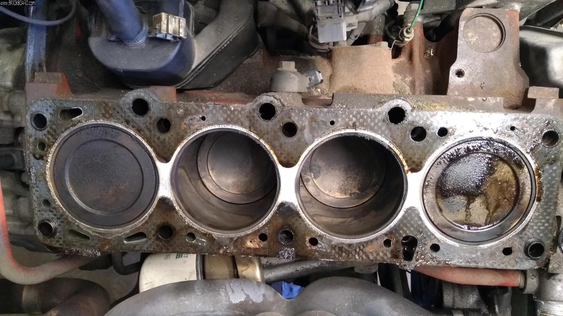 I still think it is the head gasket because I noticed in an area between the cylinder head and the block, say, the part looking at the water pump, it is wet, so something is coming out from the gasket.