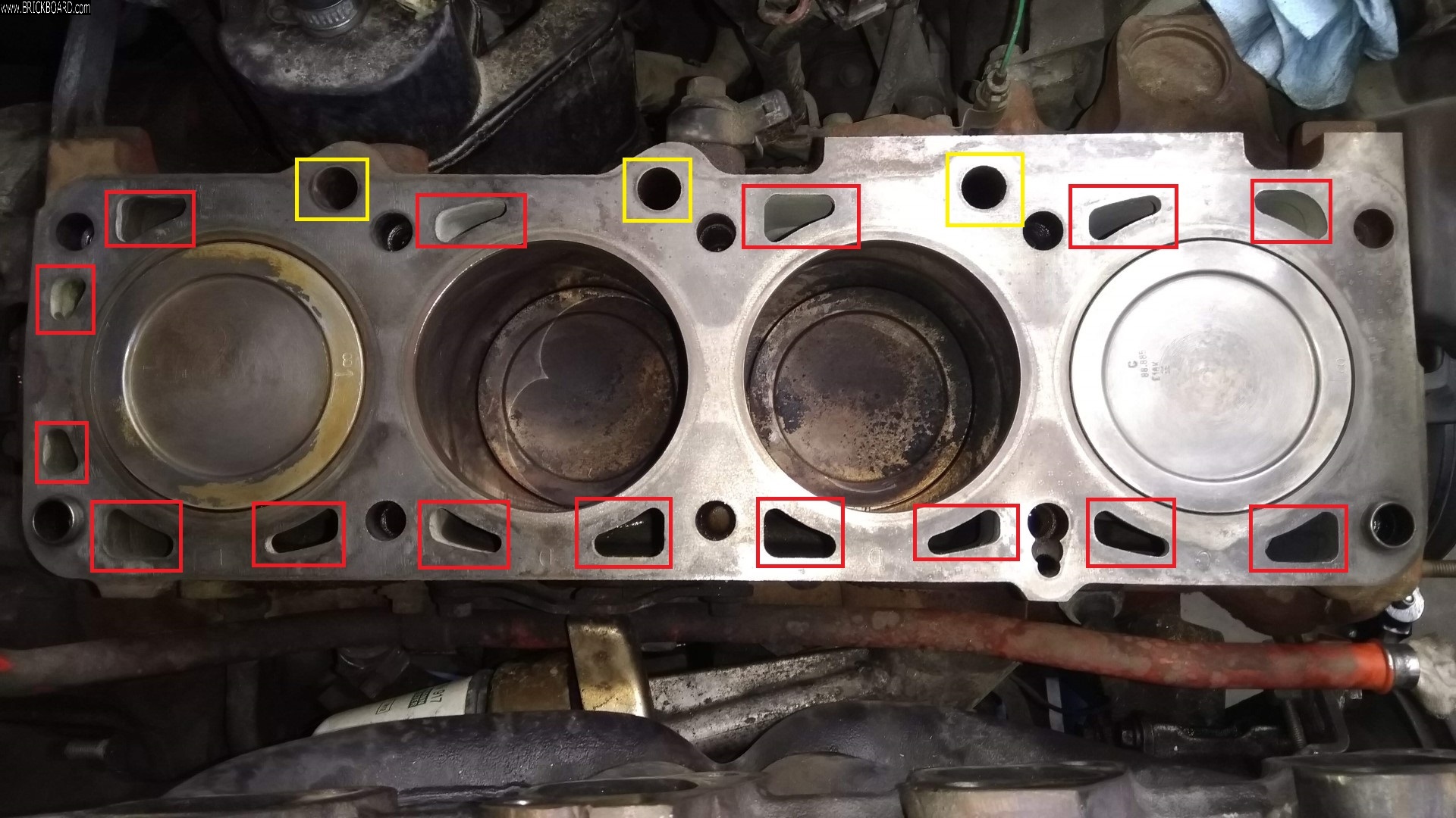 I was looking at that same spot. As a note to Allesandro - you don't have to worry about turning things like the crankshaft or camshaft -- as long as you put all the marks in the right spot on re-assembly. The B21, 23 and 230 are non-interference motors but I do not know about the B200FT--depends on camshaft lift and profile and compression ratio. With the head off you can check for valve leakage. Either remove the cam -- or turn it to check cylinders one at a time. Prop the head up on 2 stands - valves facing up. With both valves closed pour a little gasoline into the combustion chamber. If there's any leakage you'll see gas running out the intake or exhaust ports.
