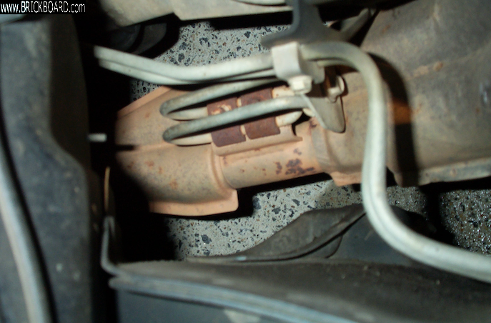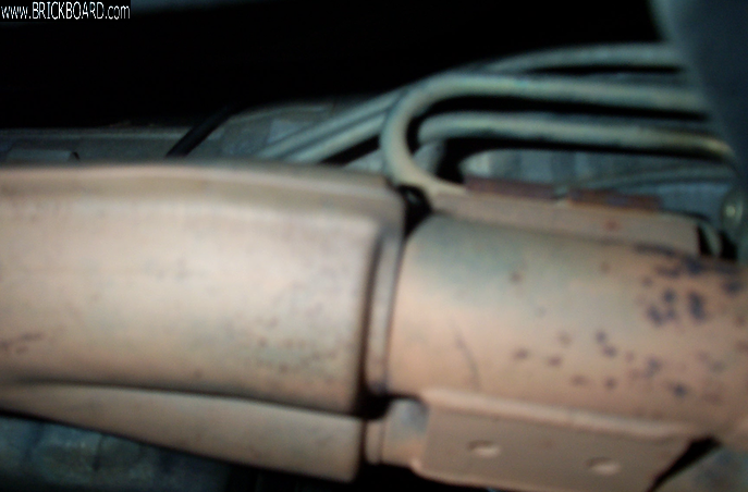 But wait - there's more! The catalytic converter (which was replaced by same Monroe) is welded to the pipe on the muffler side (three bolt flange is attached normally). I'm not sure why someone would do this, instead of using the slip joint, unless the system was too short for some reason (and they were too lazy to weld in an extension). I'll have to look at the receipts. I think the system was done piecemeal, so maybe the lazy tech cut off the old cat and installed the new, assuming cat was done second. Doesn't really matter until I have to replace the exhaust again, so I'm not too worried. I'll just buy the hanger bit, and probably some new rubbers vor both mufflers, and get it secured before something bad happens.