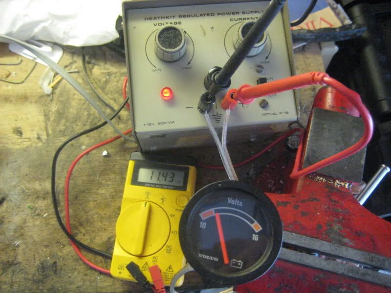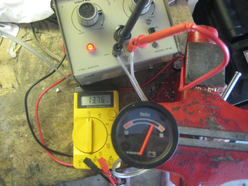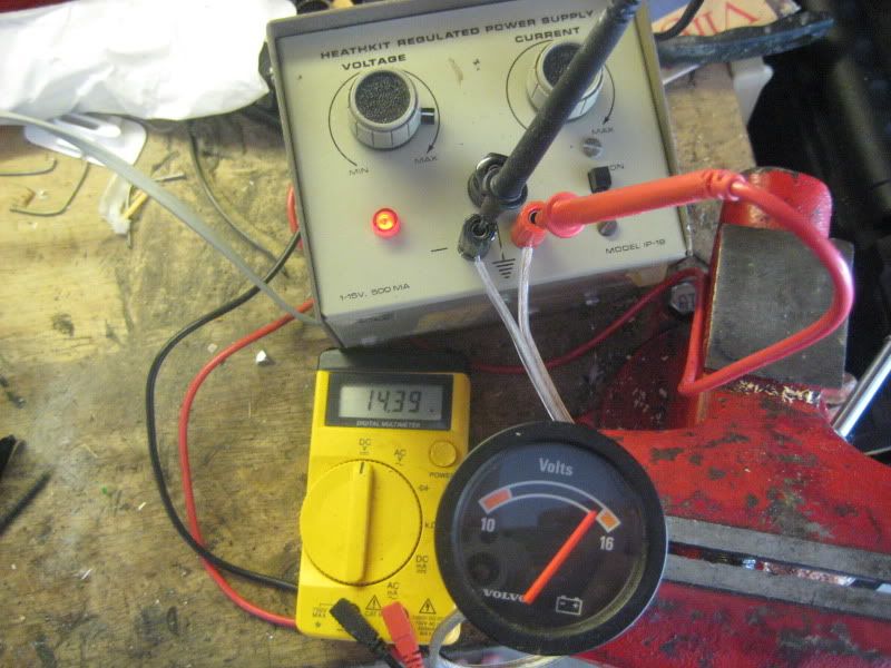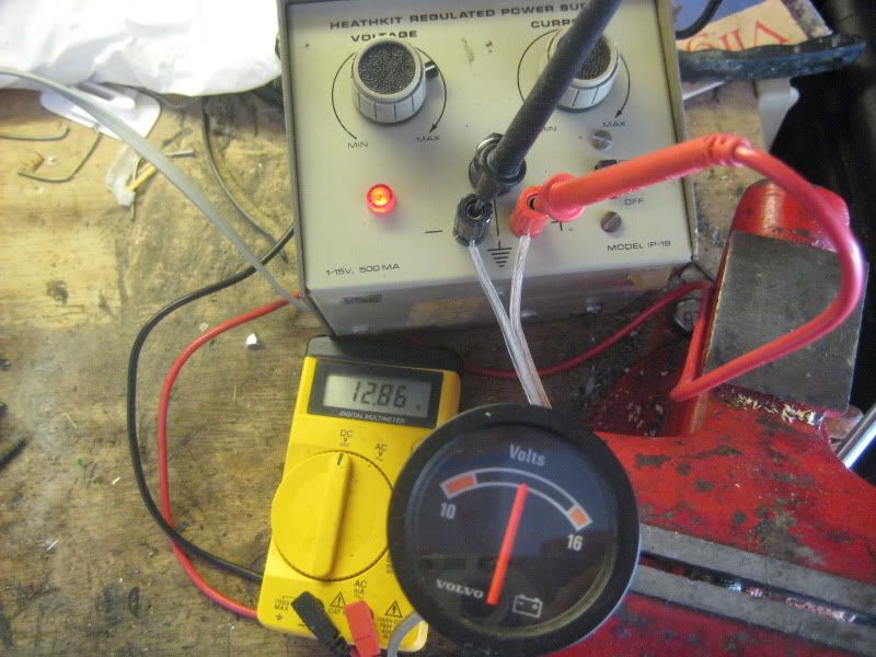 So I did some experimenting today with the genuine Volvo voltage gauge. There has been talk here about the lack of graduations on this particular gauge, and I was curious as to what the various points on the meter were actually indicating. I have an old adjustable power supply so I hooked it up to that with my cheap digital voltmeter. I found the following: