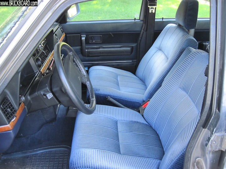 Interior is pretty good--blue velour stripe; some fading, but cushions are solid with no tears or split seams. Dash has a couple of cracks. All instruments work, so does cruise control. Recent blower motor, but AC needs a recharge.